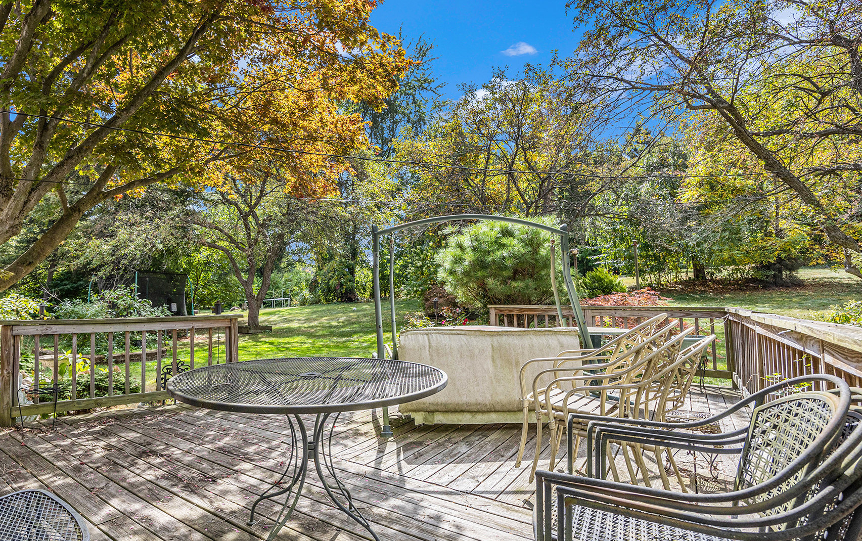 The clean unfinished basement offers tons of storage, a laundry area, and is ripe for finishing to add more living area! The generous backyard is perfect for entertaining with a large deck and patio, shaded by mature greenery. Recent updates include new water heater and new HVAC system in 2023.