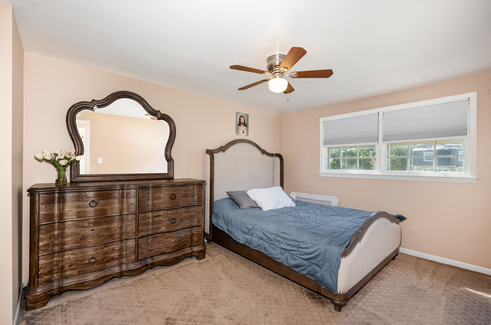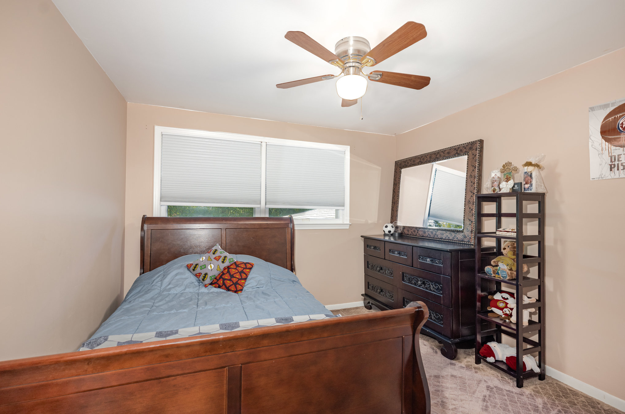The upper level hosts four generous bedrooms, all with neutral decor and ample closets including a spacious primary with its own private full bath. Both the ceramic full and half baths have been remodeled with new fixtures, vanities, and trending decor. Practical details shine here. The attached 2-car garage includes a bonus storage room that doesn’t take away from parking space.